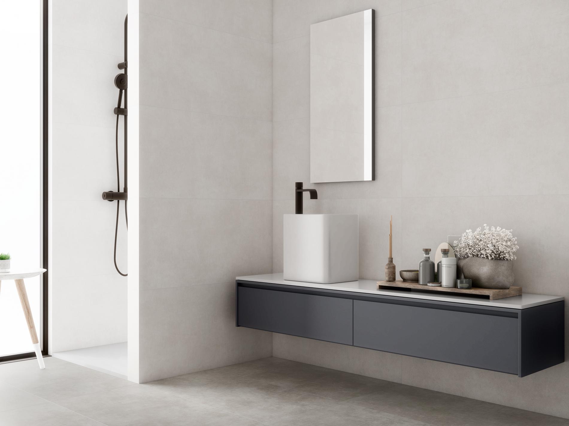 La collection ATALPHA propose un effet béton avec un rendu simple et moderne, parfaitement adapté aux projets intérieurs.