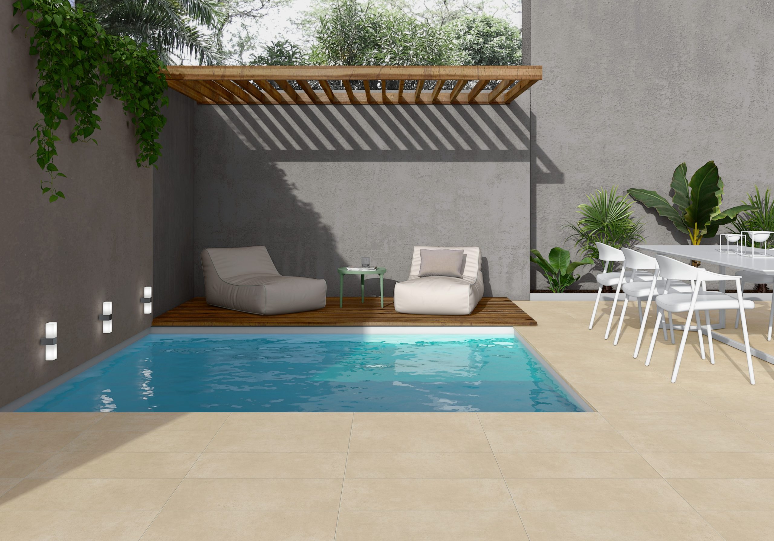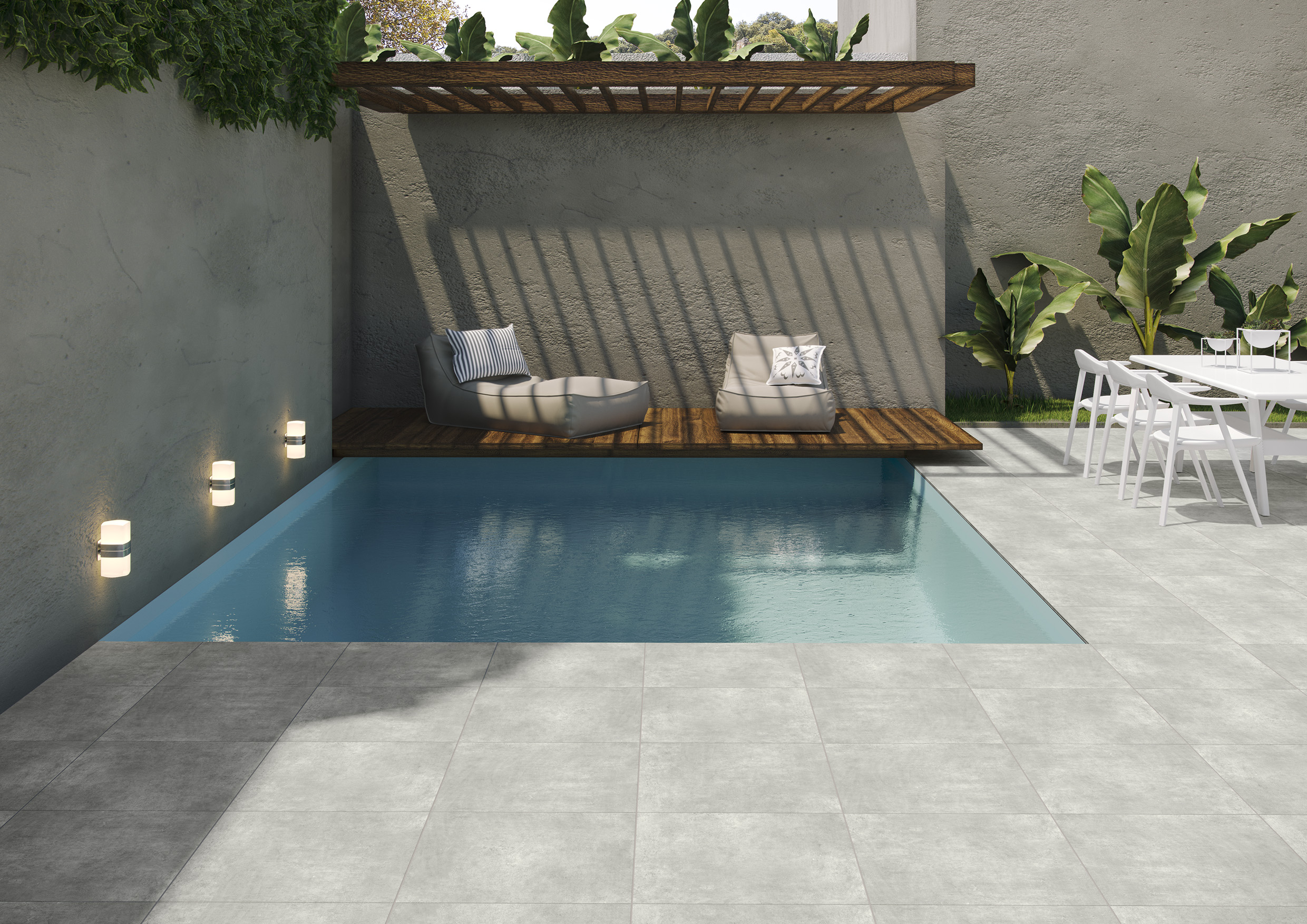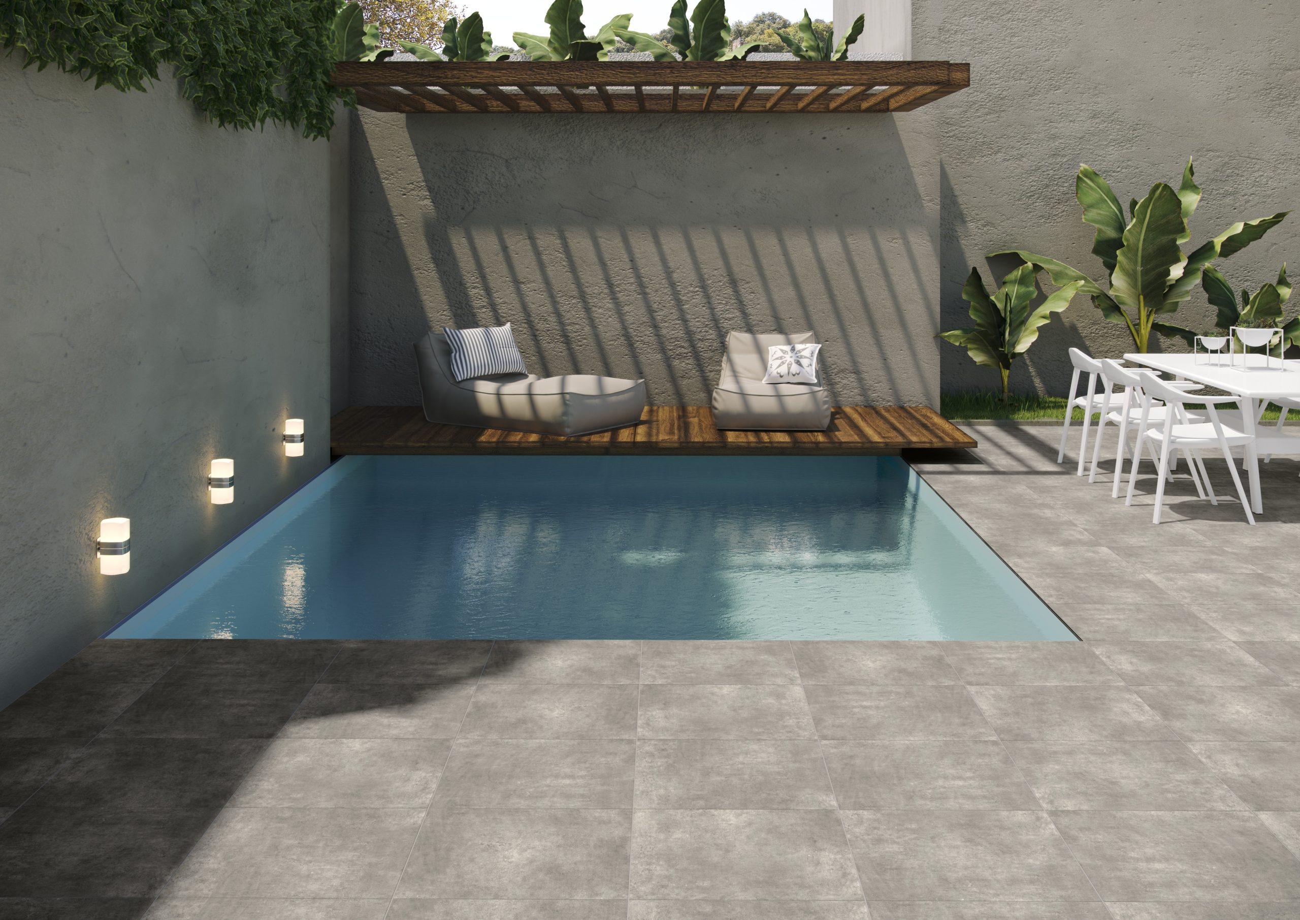 Le carrelage 45×45 LOFT offre un effet béton moderne dans un format pratique, idéal pour intérieur et extérieur.