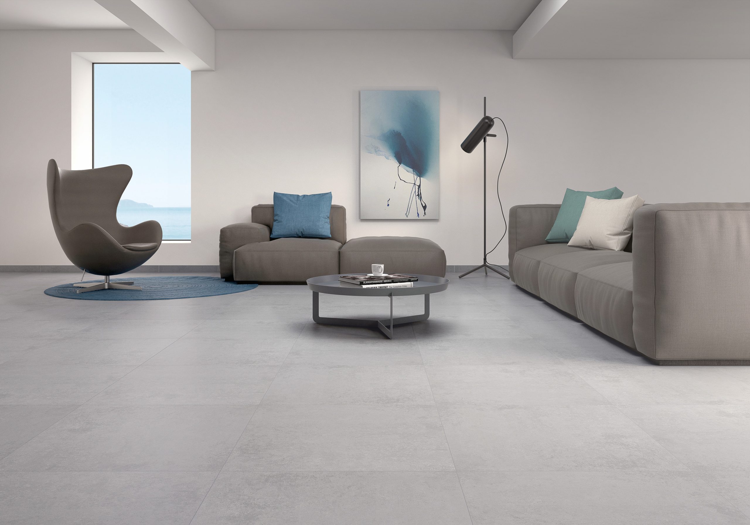 Le carrelage 60×60 RIGA offre un effet béton moderne, idéal pour un intérieur contemporain et épuré.