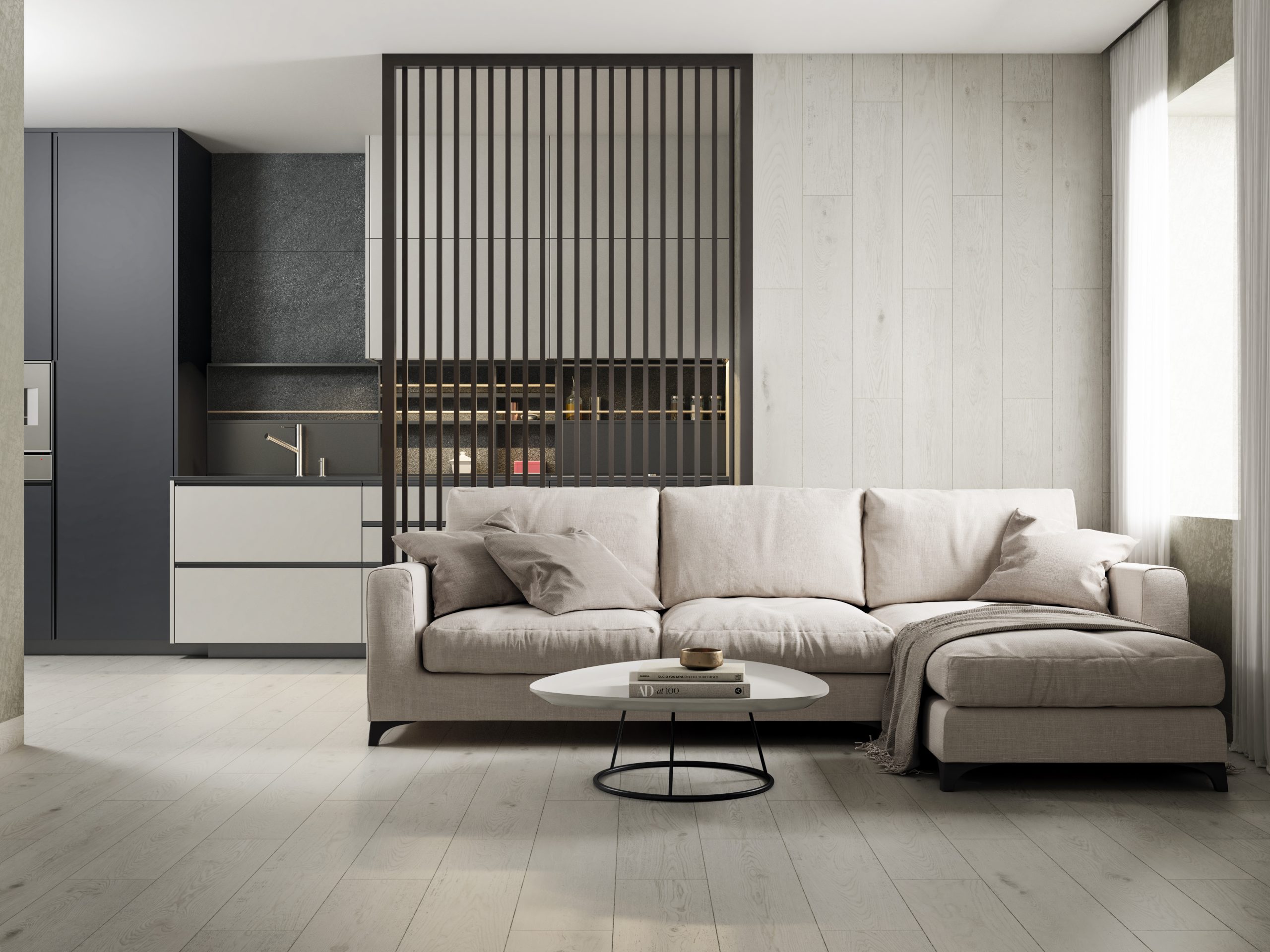 Le carrelage 20×120 AT EVOQUE offre un effet bois moderne et minimaliste, idéal pour intérieur contemporain.