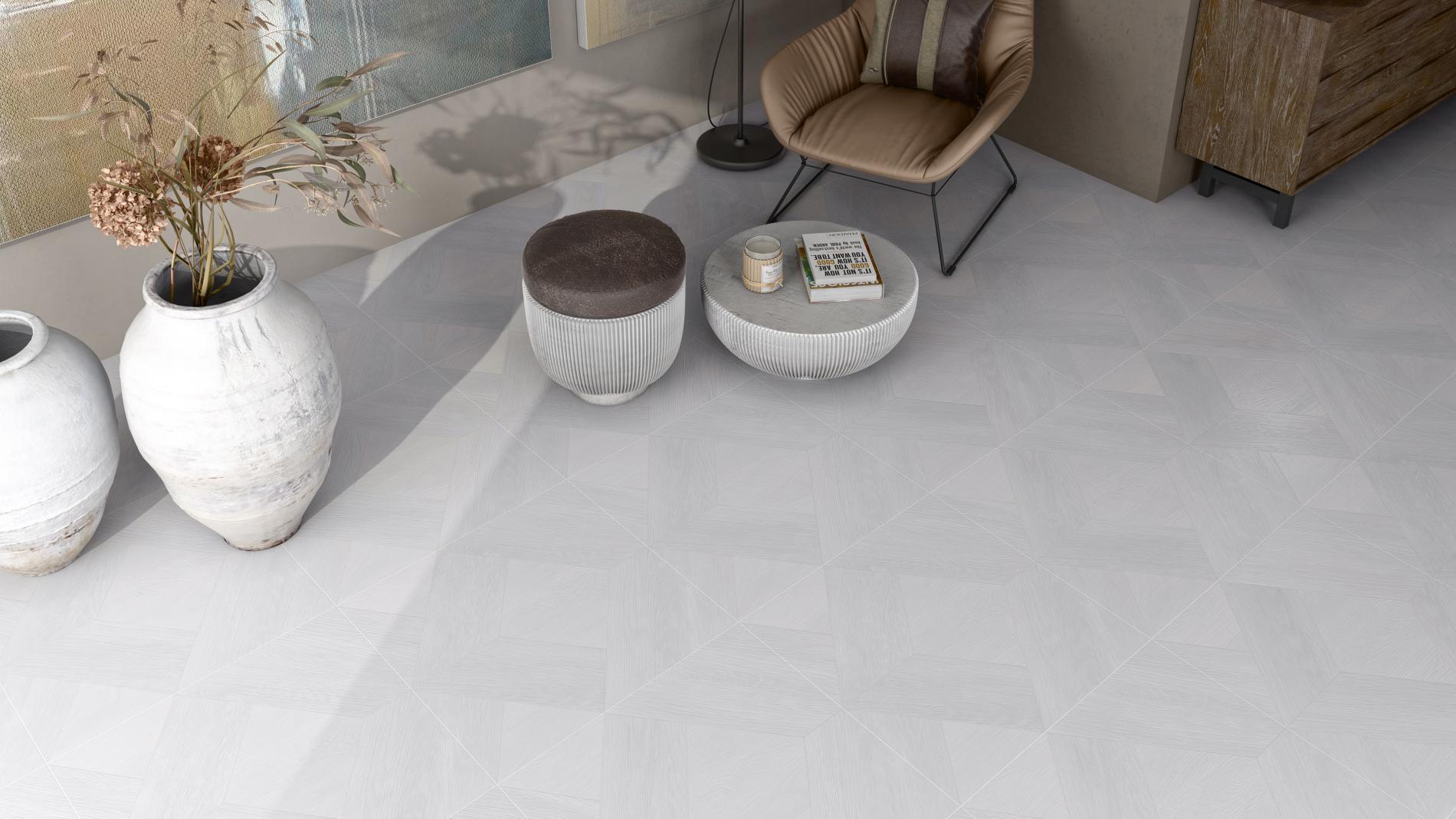 La collection GREENPARK propose un effet bois revisité avec un format carré 60,8×60,8 cm, offrant un rendu original et différent des parquets traditionnels.