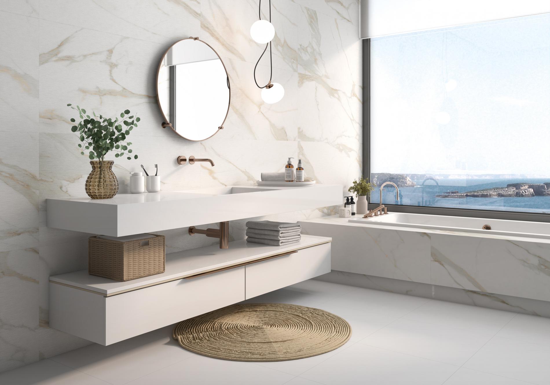 Le carrelage 60×120 CALACATA GOLD combine élégance du marbre et facilité de pose, idéal pour intérieur moderne.