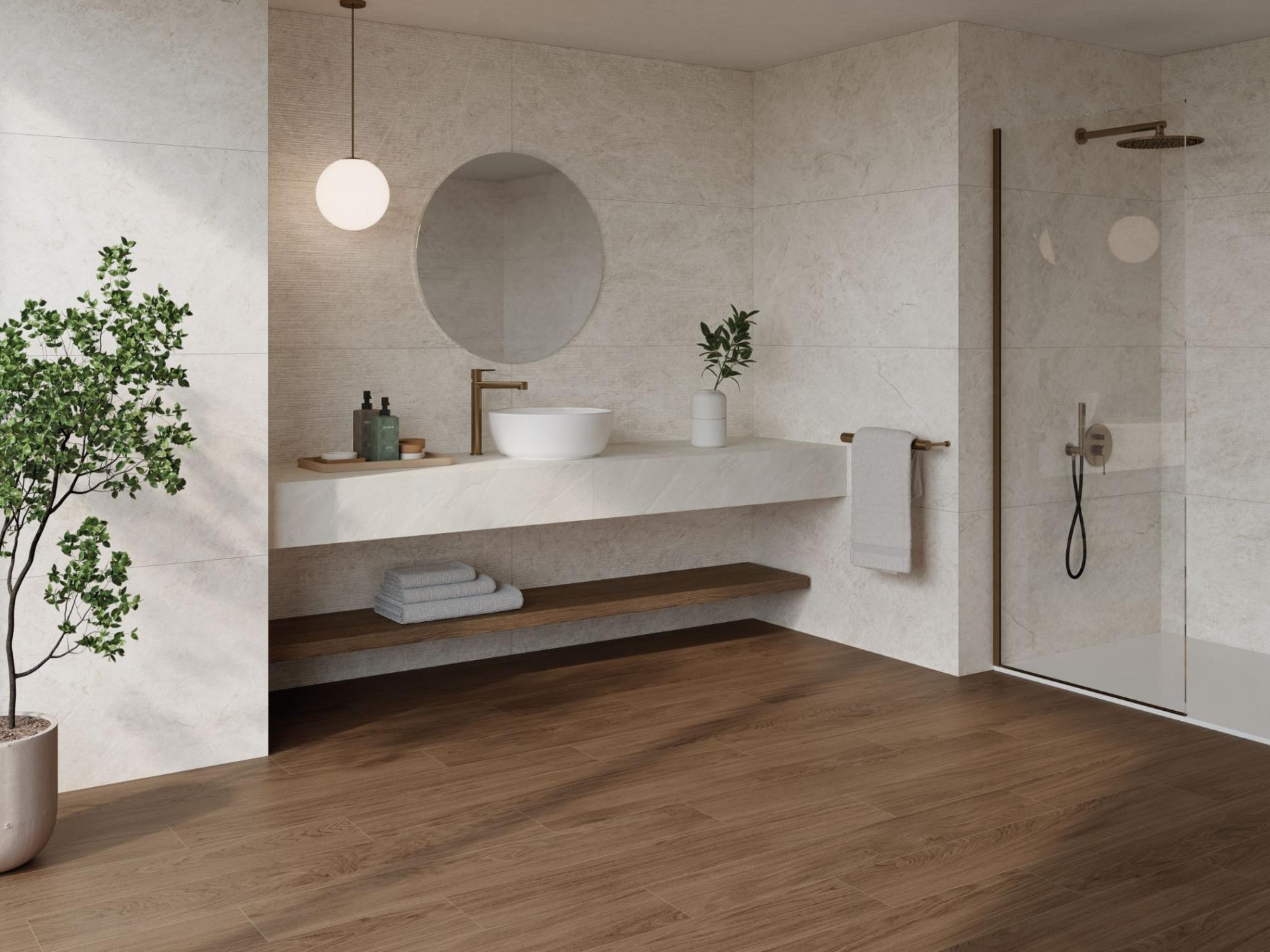 Le format 60×120 cm est parfait pour une pose contemporaine avec peu de joints, apportant une sensation d’espace et de continuité.