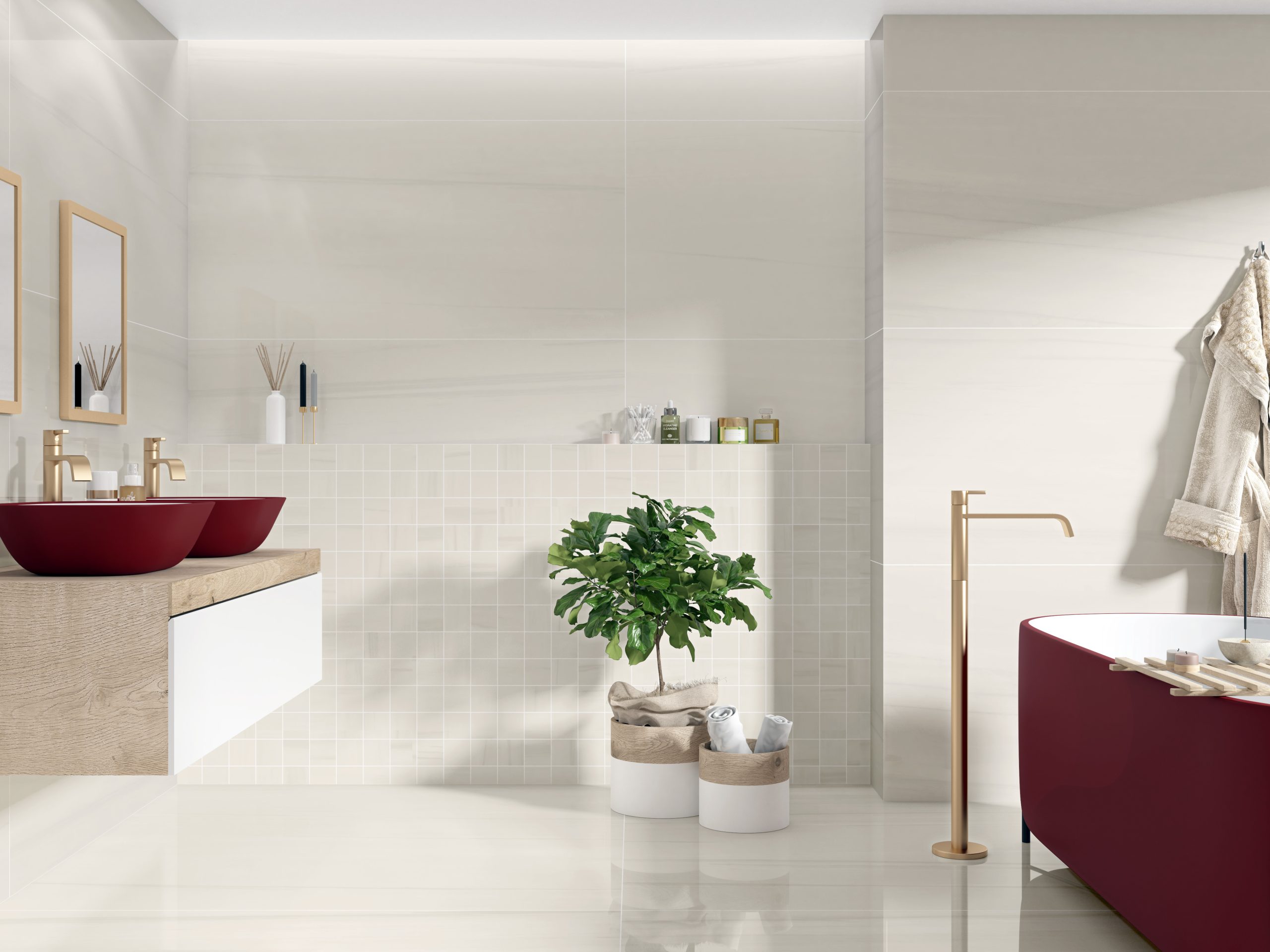 La collection DOLOMITE s’inspire du marbre blanc naturel avec des veines douces et équilibrées, offrant un rendu élégant et intemporel.