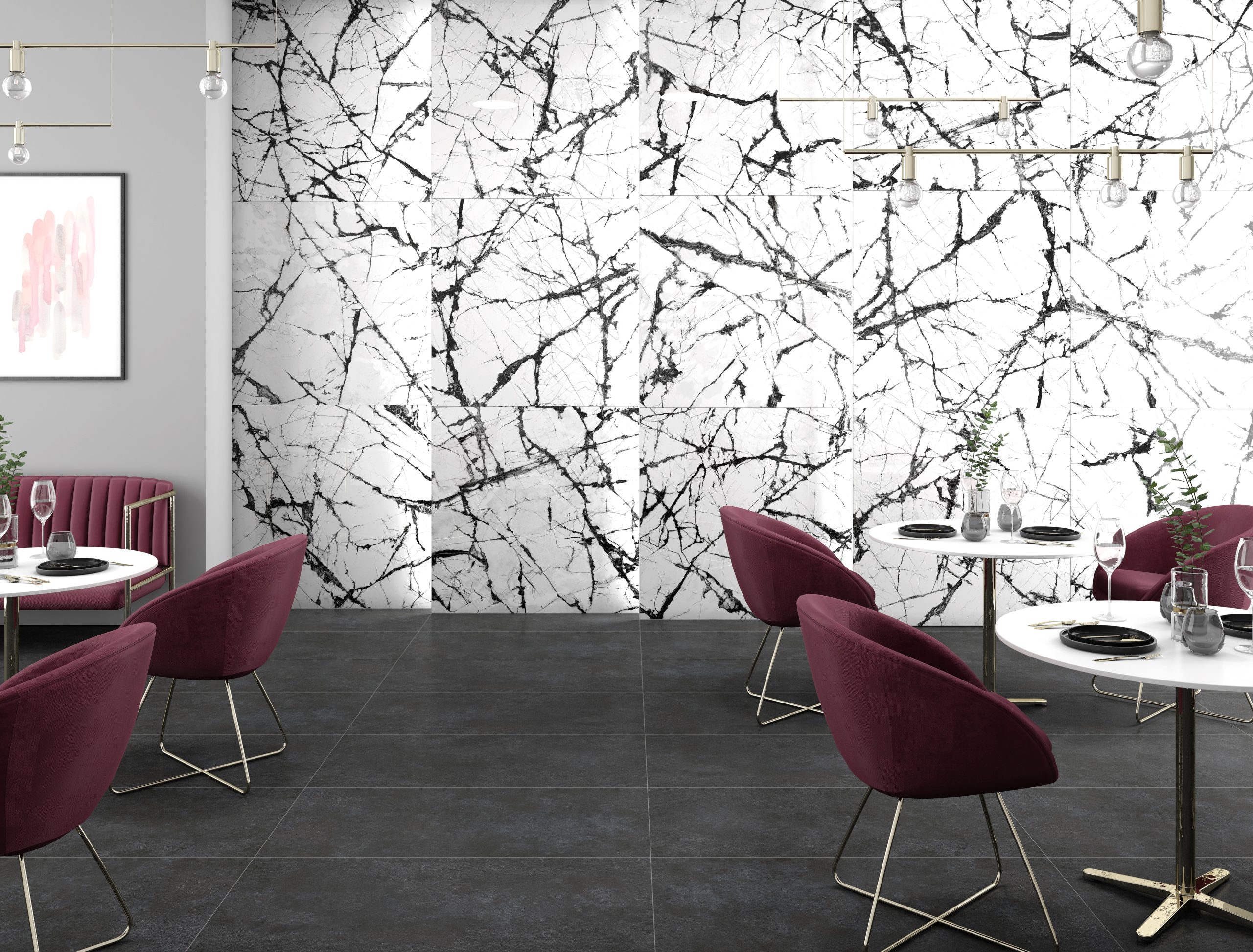 Le format 120×120 cm permet de créer des surfaces continues avec un minimum de joints visibles.