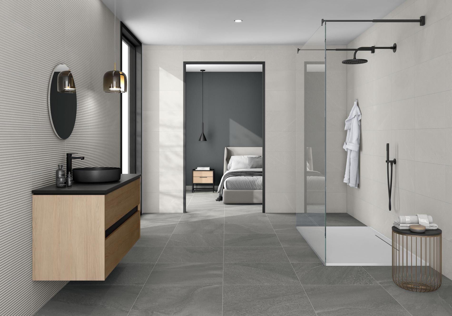 La collection BURLINGSTONE s’inspire de la pierre naturelle type calcaire, avec des nuances douces et équilibrées qui apportent une ambiance moderne et apaisante.