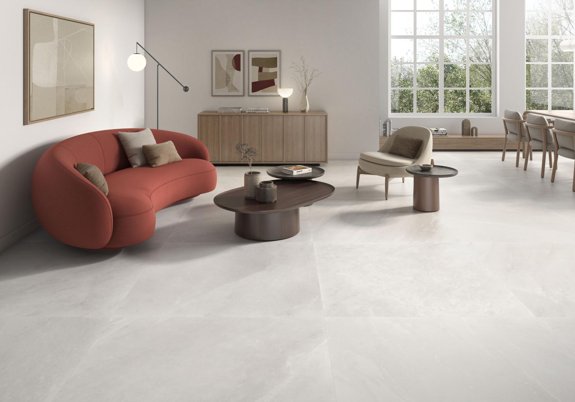 Le carrelage 60×120 PRINCE offre un effet pierre minérale dans un format pratique et élégant.