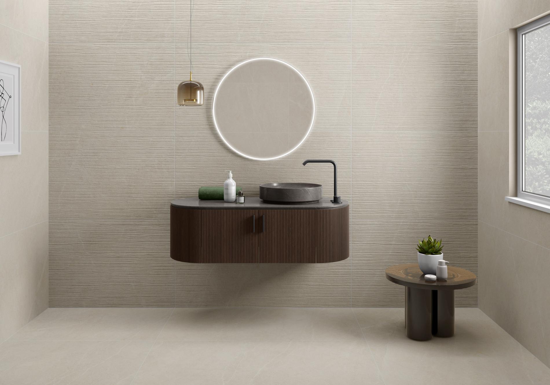 Le format 60×120 cm permet de réduire les joints et d’obtenir un rendu homogène.