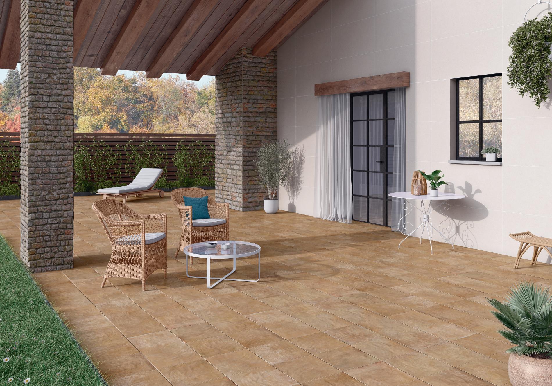 Le carrelage 33,3×33,3 ORIGIN TOSCANA offre un effet terre cuite classique, idéal pour un rendu authentique.
