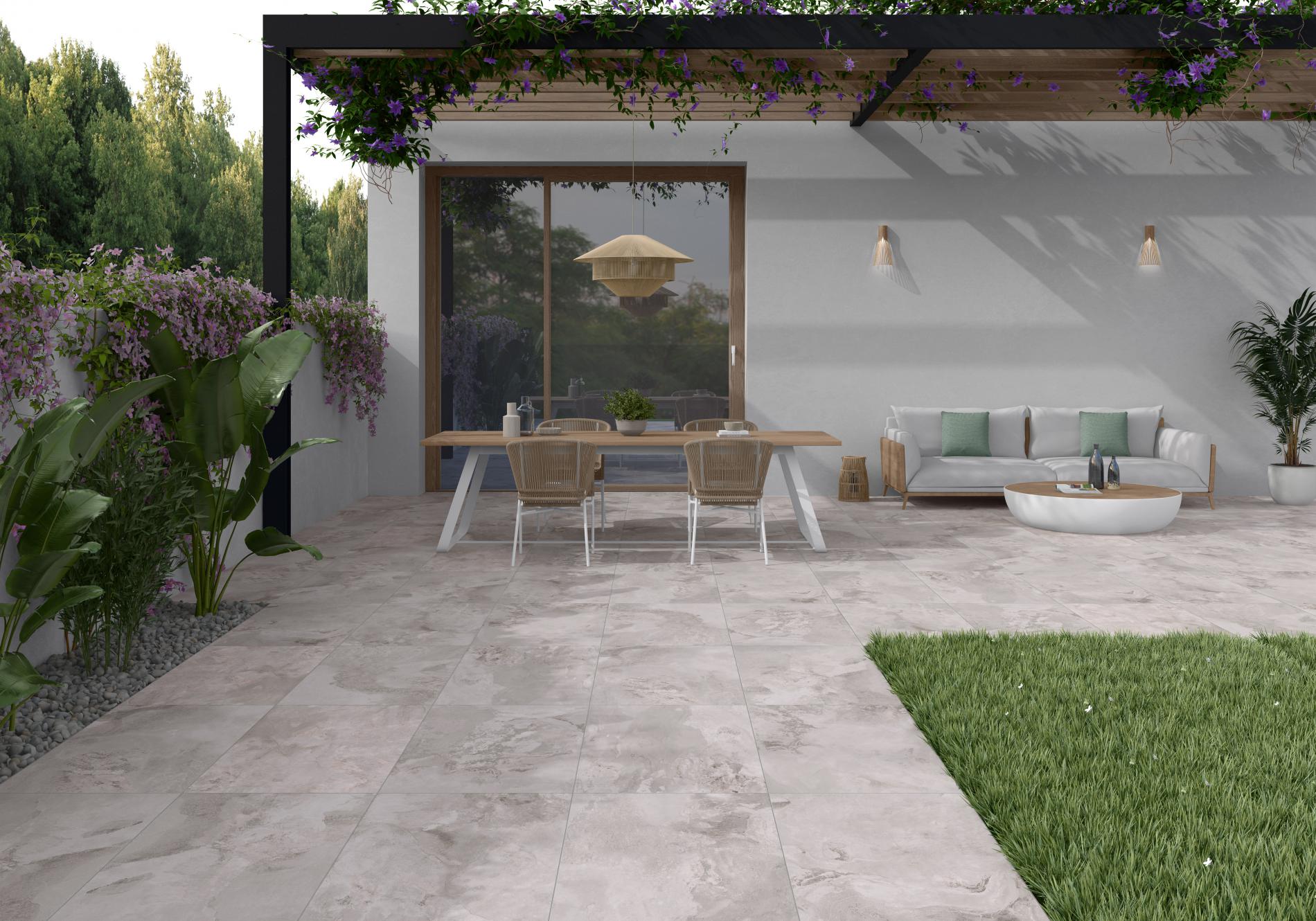 Son format 60×90 cm permet de créer des surfaces modernes avec moins de joints, offrant un rendu plus esthétique pour les espaces extérieurs.