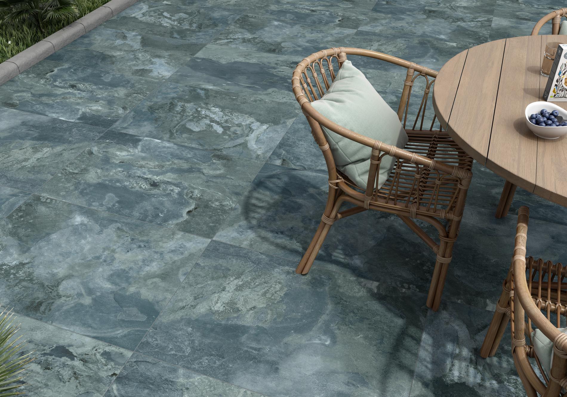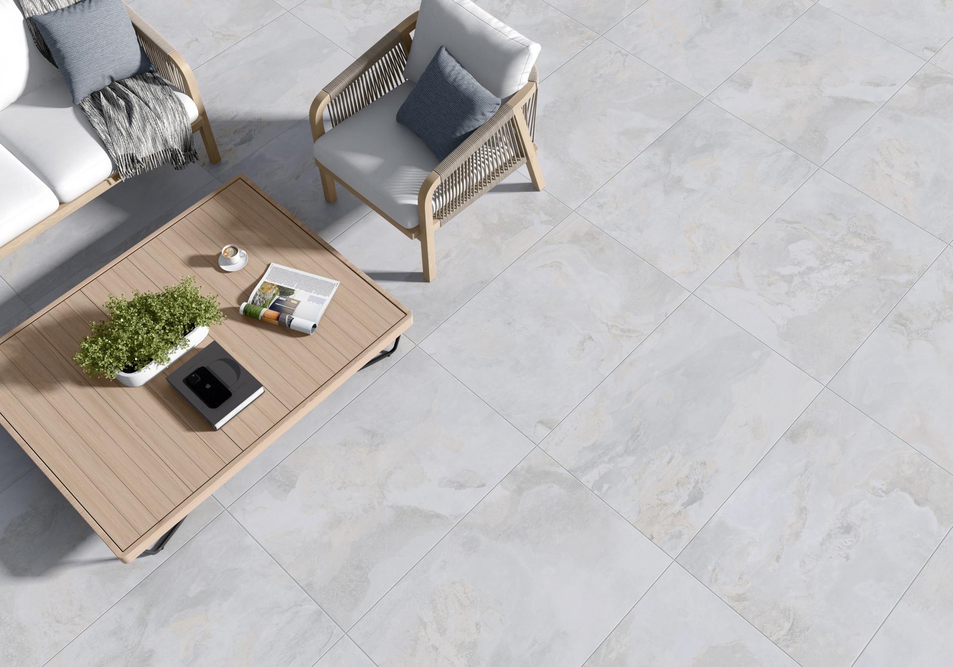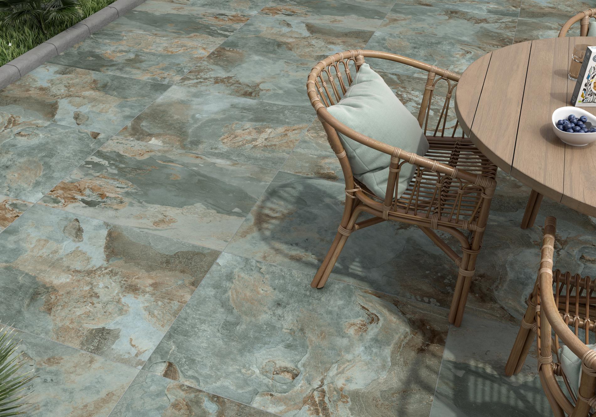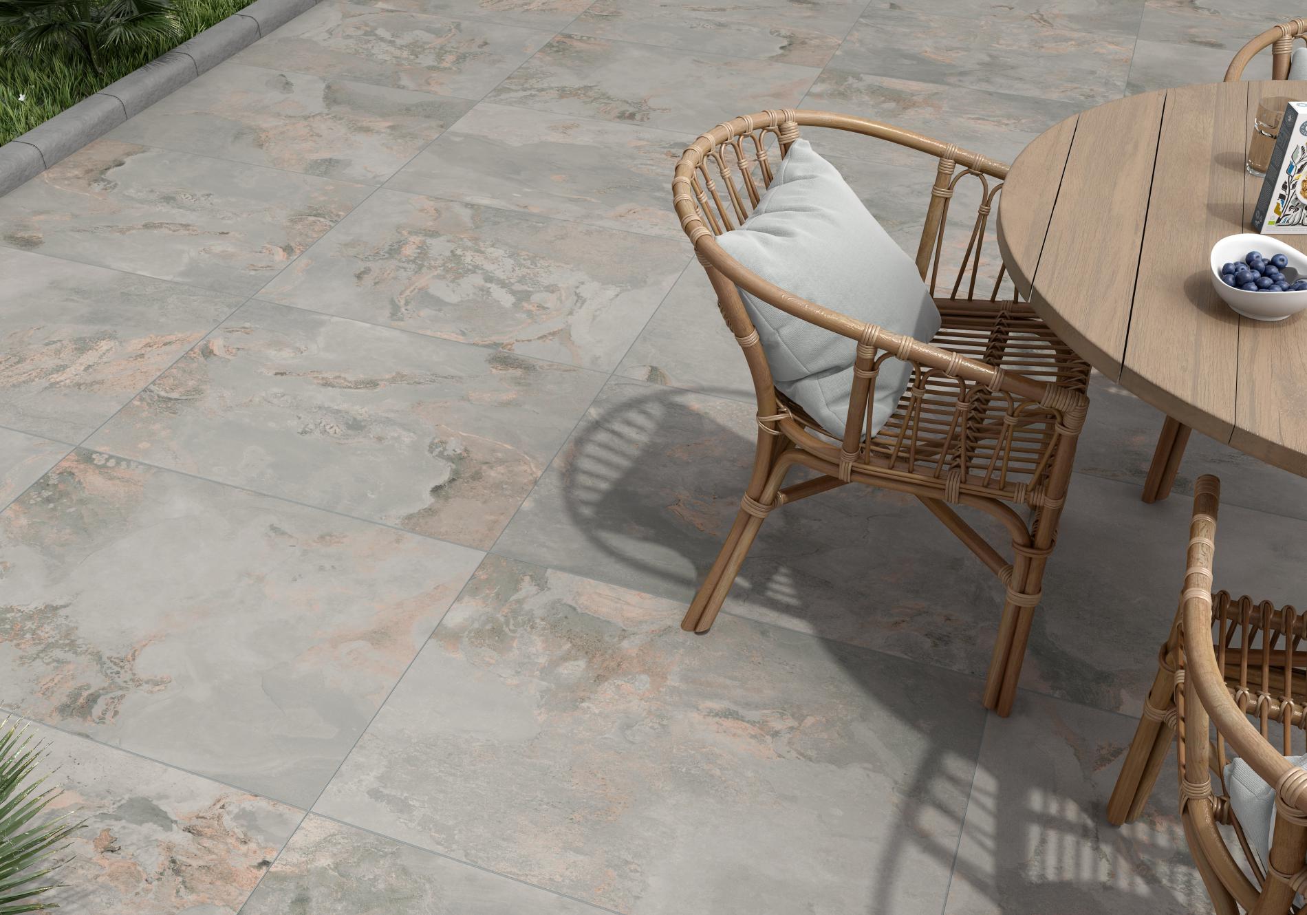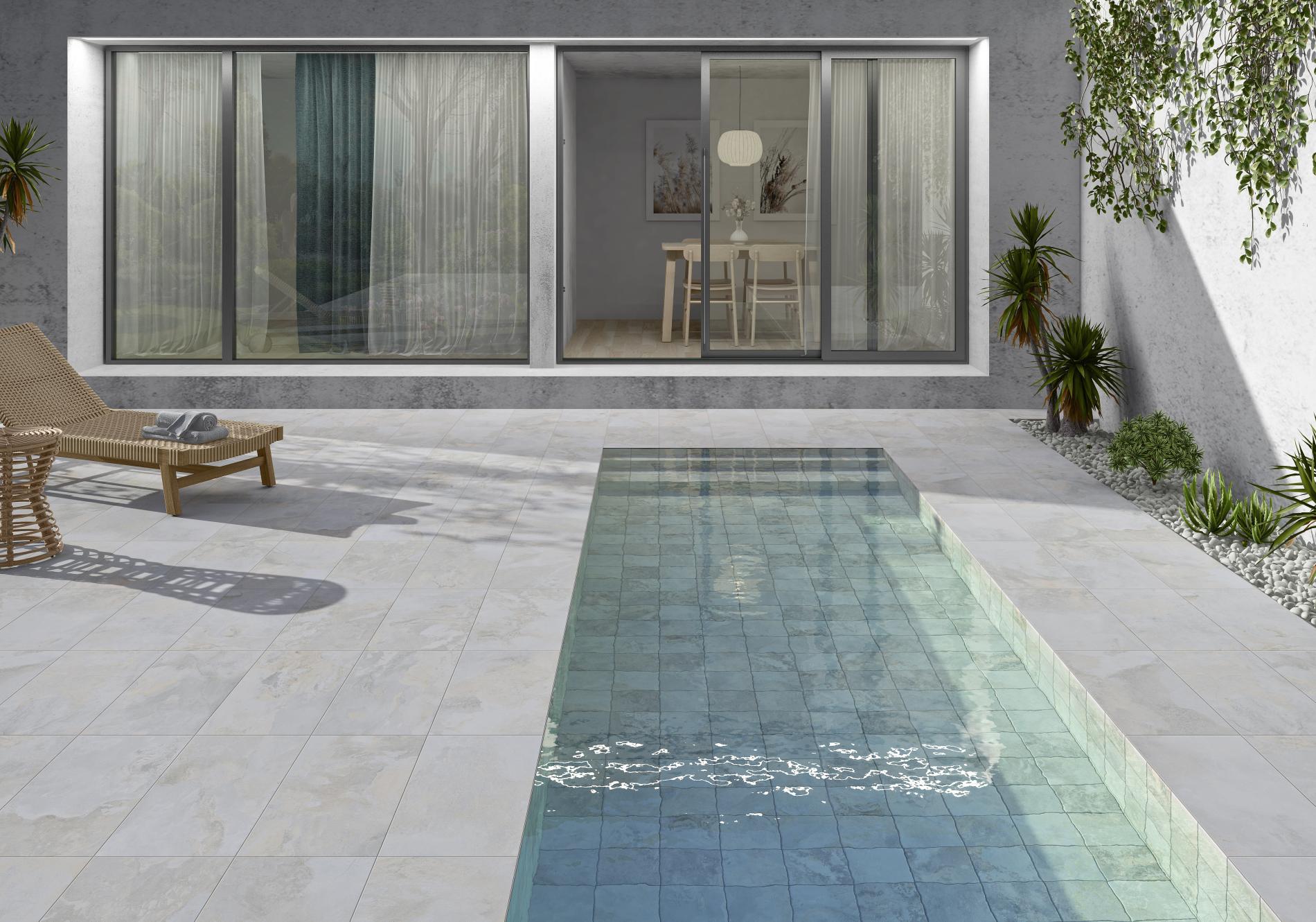 Le carrelage 60×90 OKAI en 20 mm offre un effet pierre naturelle antidérapant, idéal pour terrasse et extérieur.