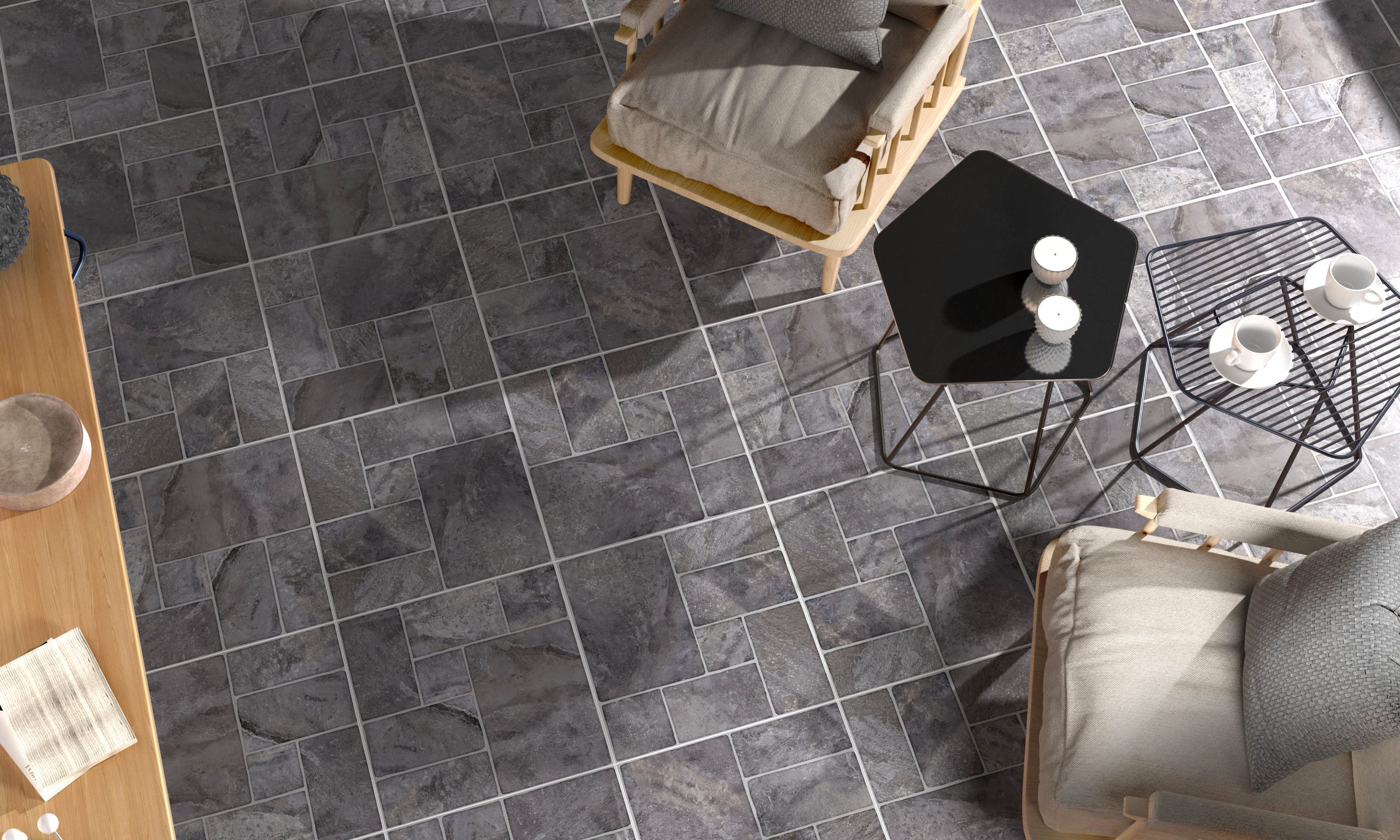 La variation importante entre les carreaux (V4) permet d’obtenir un effet pierre très réaliste et naturel.