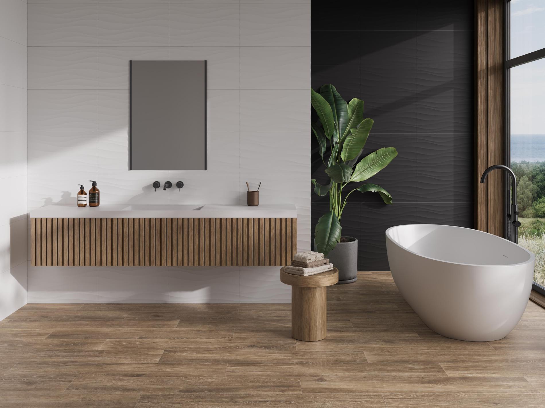 Disponible en version lisse ou relief (RLV), ce carrelage permet de créer des murs personnalisés avec du volume et du style.