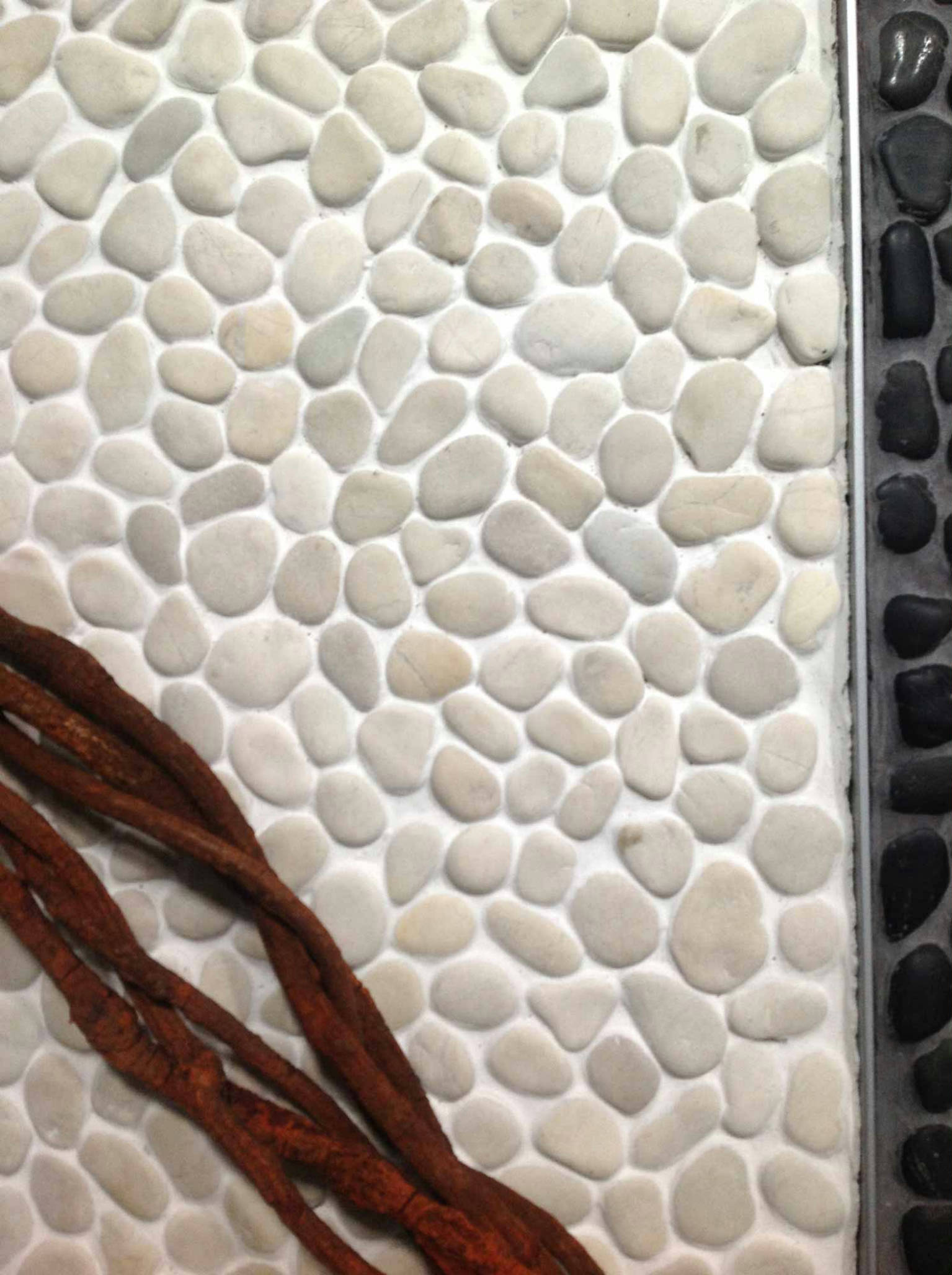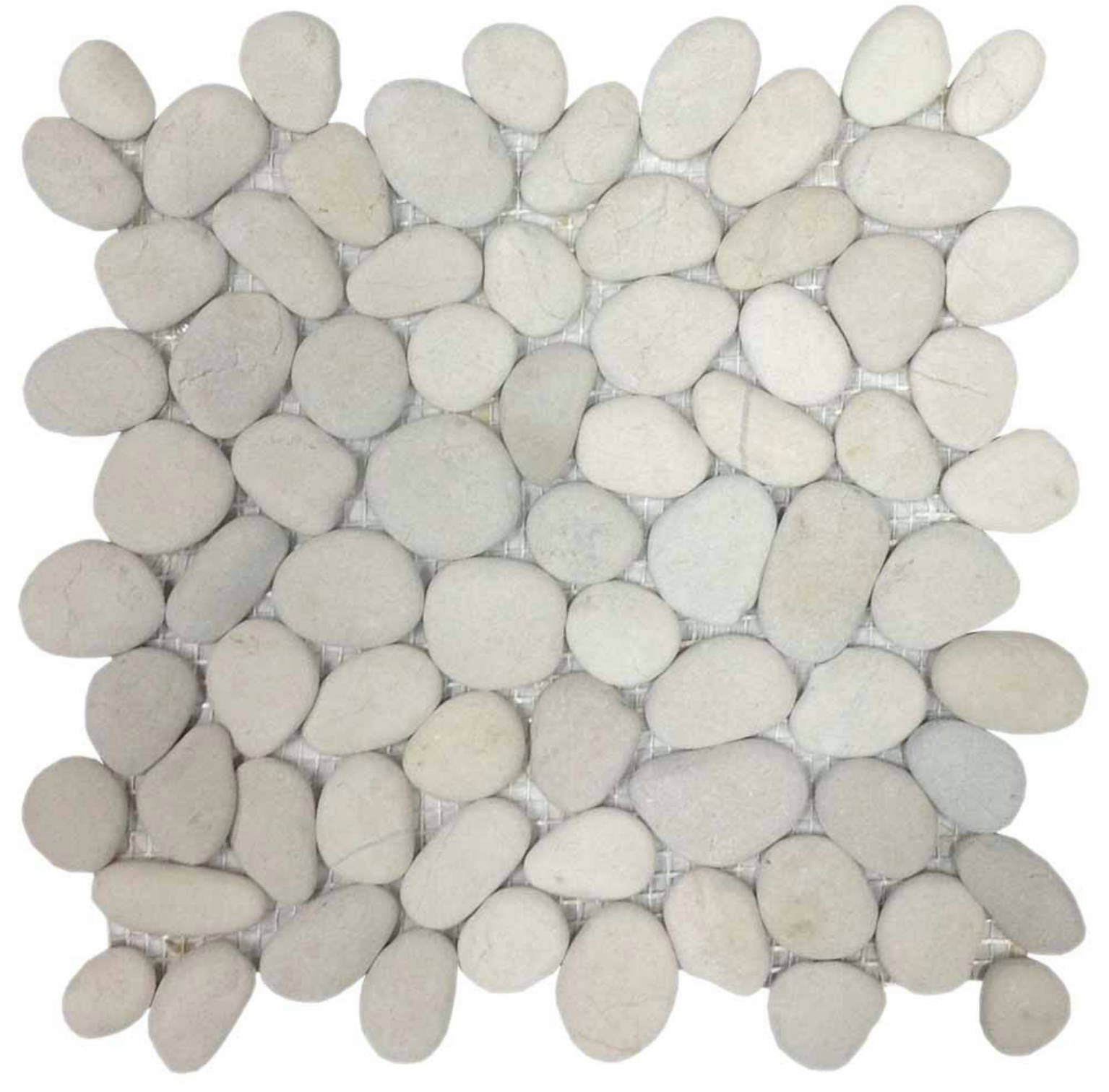 Mosaïque en galets naturels PIEDRA EXTRA BLANCA, idéale pour créer des espaces lumineux avec un effet pierre naturelle très pur et élégant.