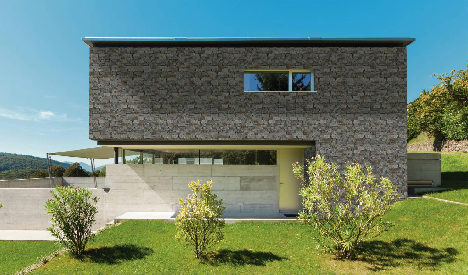 Grâce à sa structure en pierre naturelle stratifiée, ce revêtement crée du relief et des jeux d’ombres naturels qui renforcent son aspect architectural.