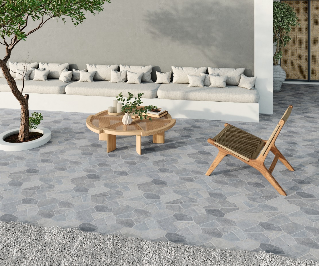 Le modèle Ushuaia Gris de Mosavit est un revêtement mural en pierre naturelle au style contemporain, caractérisé par ses nuances gris naturelles et son relief structuré.