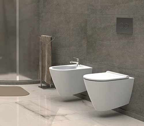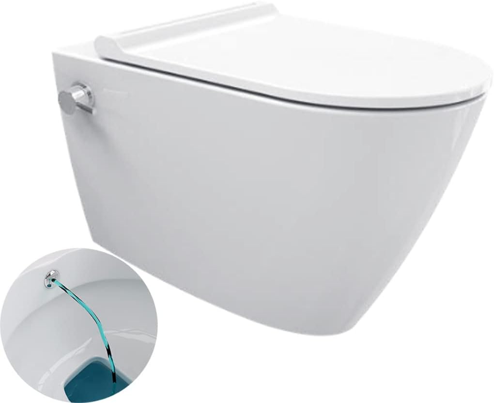 WC suspendu sans bride avec fonction bidet intégrée (taharet), offrant hygiène maximale et confort moderne.
